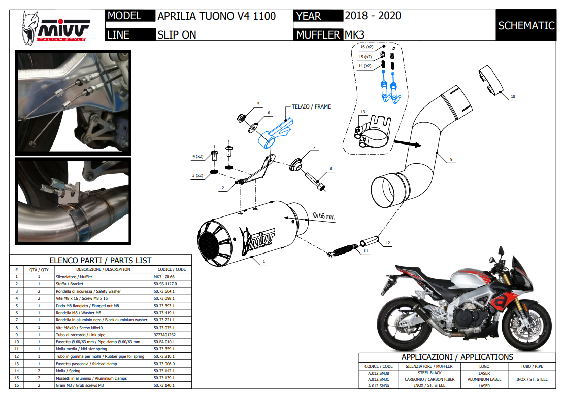 Mivv MK3 Carbon Einddemper zonder E-keur Aprilia Tuono V4 1100 2018 - 2020