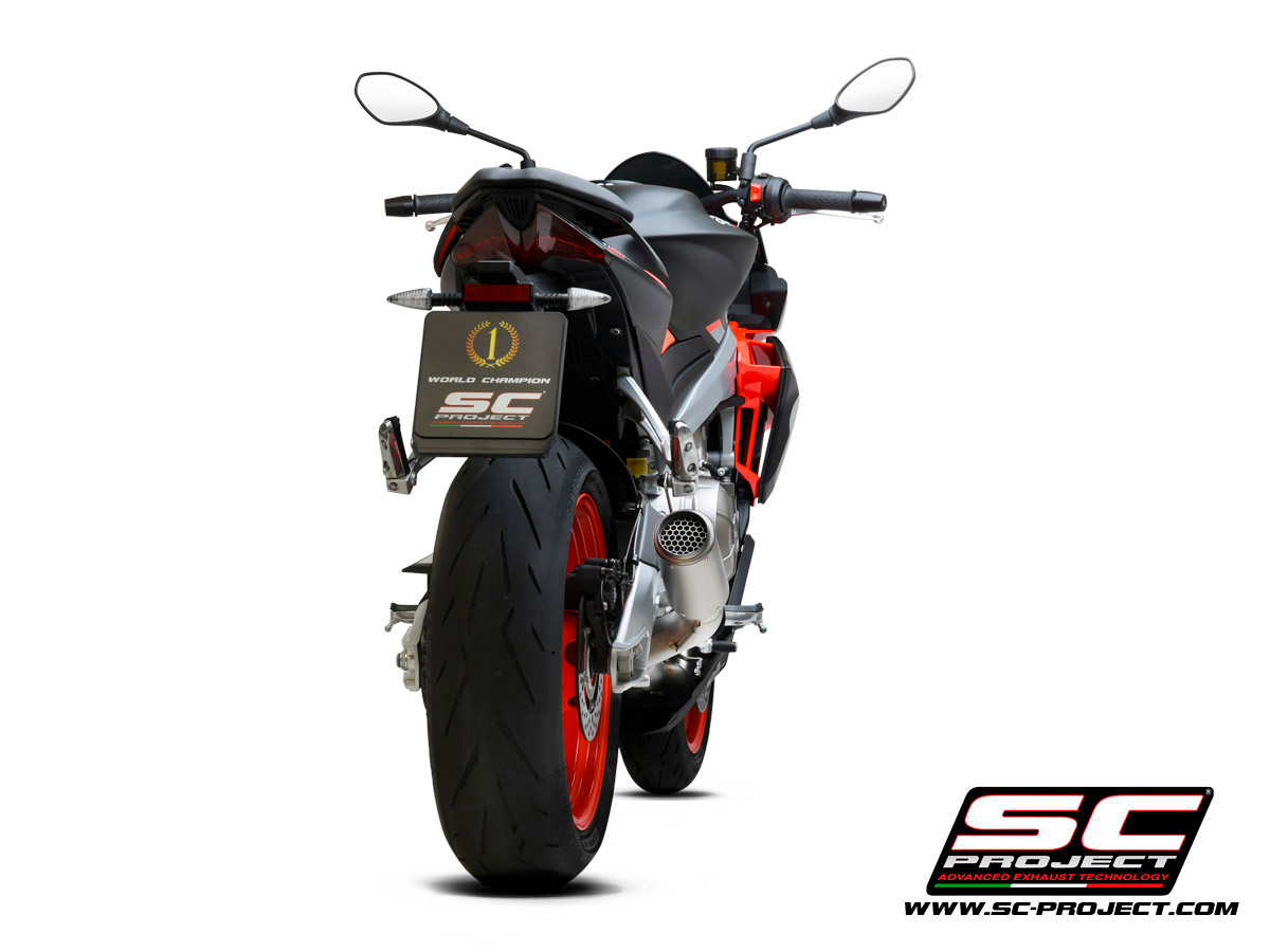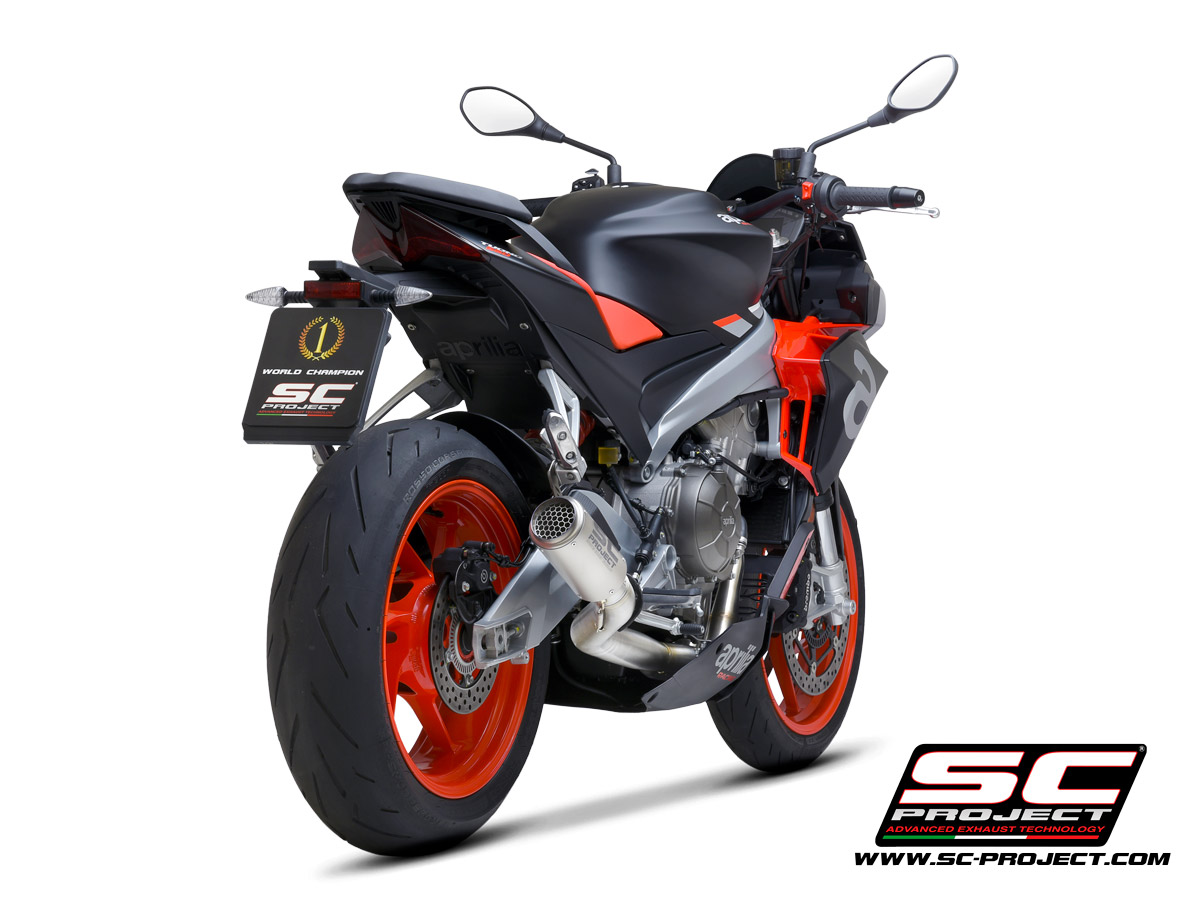 SC-Project Volledig 2-1 RVS Uitlaatsysteem Met CR-T Titanium With Stoneguard Grid Einddemper Zonder E-keur APRILIA TUONO 660 2021 - 2024