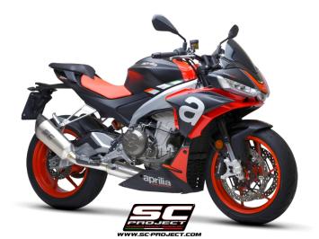 SC-Project Volledig 2-1 RVS Uitlaatsysteem Met SC1-R Titanium Einddemper Euro5 Gekeurd APRILIA TUONO 660 2021 - 2024