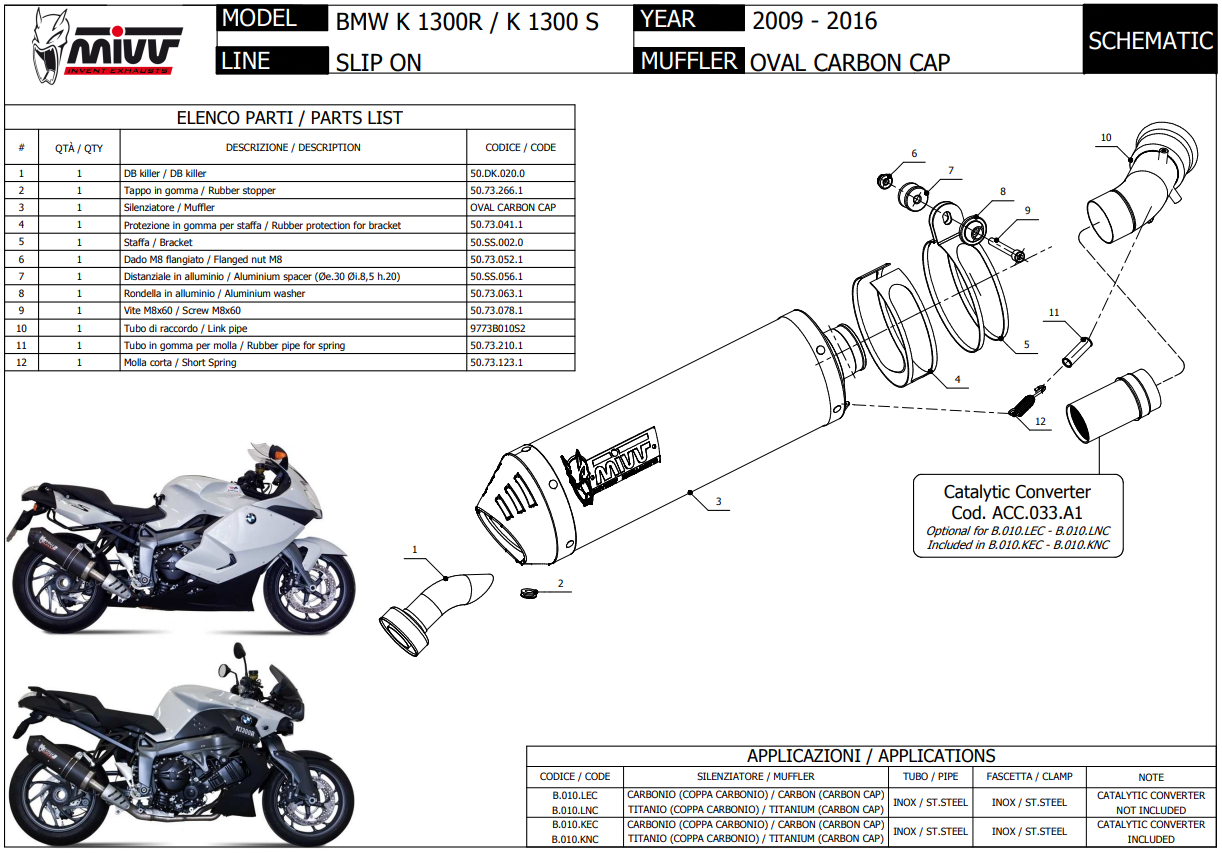 Mivv Oval Carbon met Carbon Cap Slip-on Einddemper met E-keur BMW K 1300 R / S 2009 > 2016