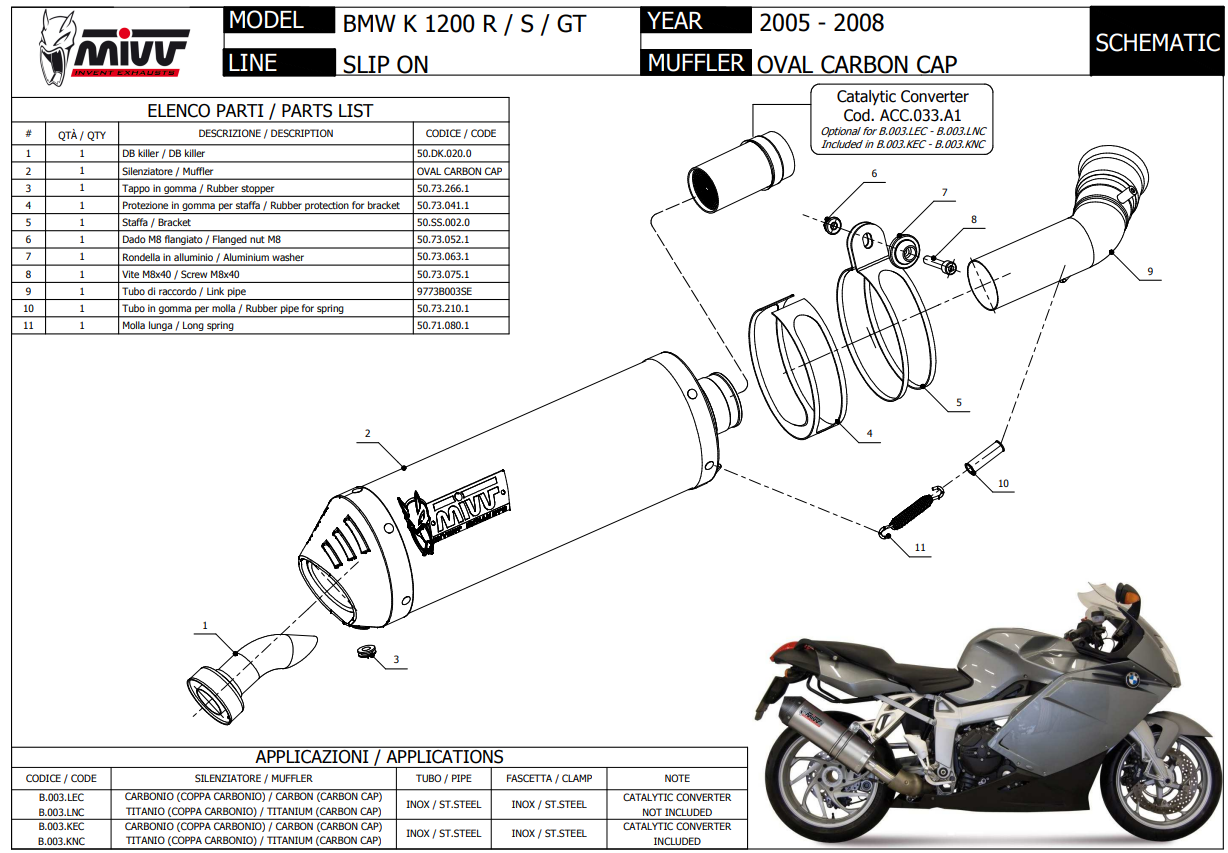 Mivv Oval Carbon met Carbon Cap Slip-on Einddemper met E-keur BMW K 1200 R / S 2005 > 2008