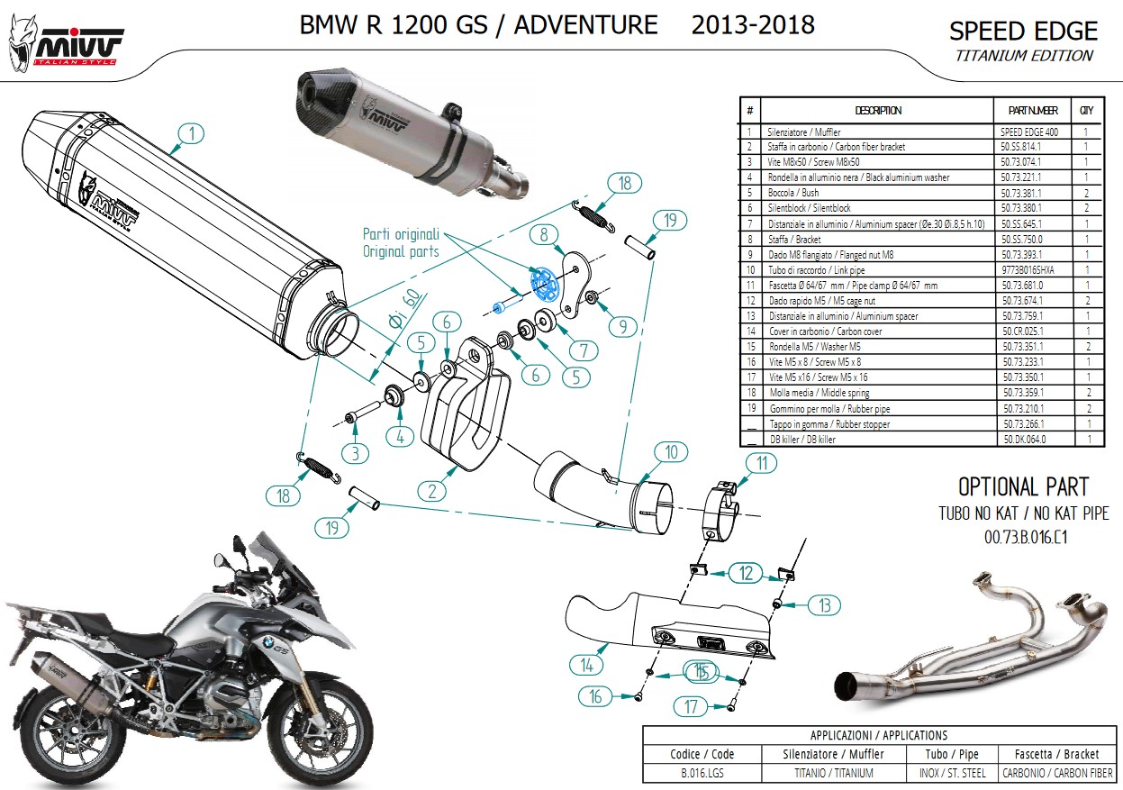 Mivv Speed Edge "Special Titanium Edition" Slip-on Einddemper met E-keur BMW R1200GS 2013 - 2018