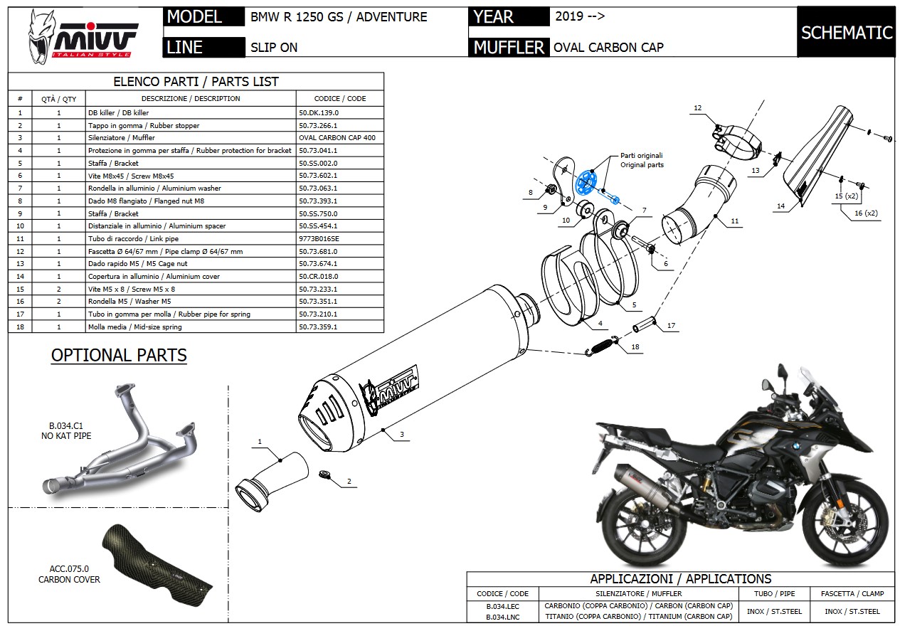 Mivv Oval Carbon Slip-on Einddemper met E-keur BMW R 1250 GS 2019 - 2023