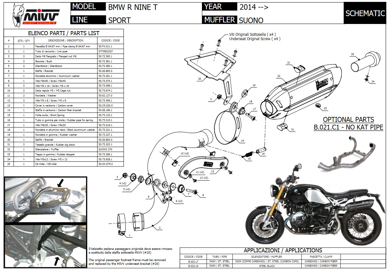 Mivv Suono RVS Black High Up Slip-on Einddemper BMW R NINE T 2014 > 2020