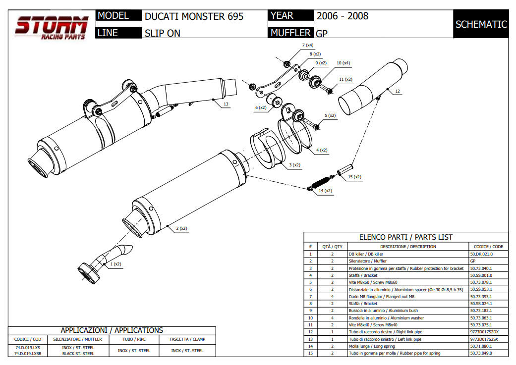 Storm By Mivv Dubbele GP RVS Black Slip-On Einddemper Met E-keur DUCATI MONSTER 695 2006 - 2008