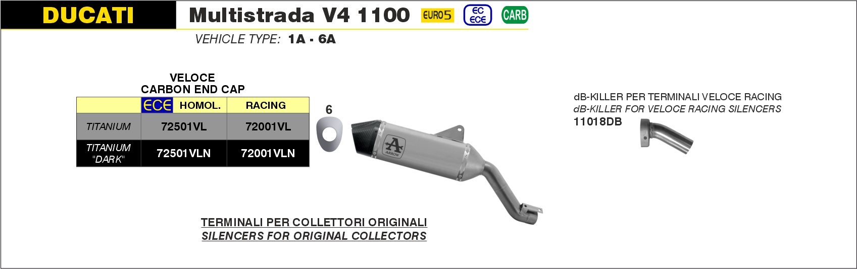 ARROW 72501VL Veloce titanium einddemper met linkpipe met E-keur Multistrada V4 1100 2012/2024