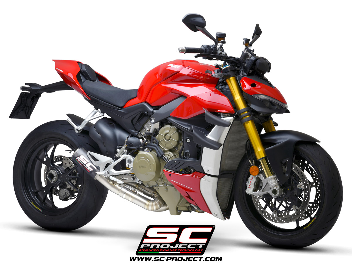 SC-Project 2-1 Halfsystem Titanium Met CR-T M2 Carbon Einddemper Zonder E-keur DUCATI STREETFIGHTER V4 2021 - 2022