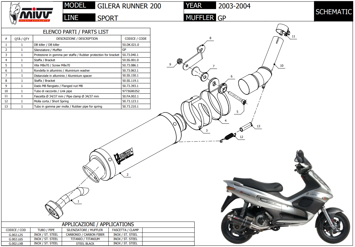 Mivv GP RVS Black Slip-on Einddemper met E-keur Gilera Runner 200 2003 > 2004