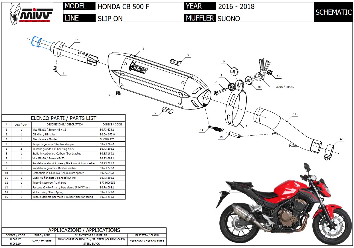 Mivv Suono RVS Black Einddemper met E-keur Honda CB 500 F 2016 > 2018