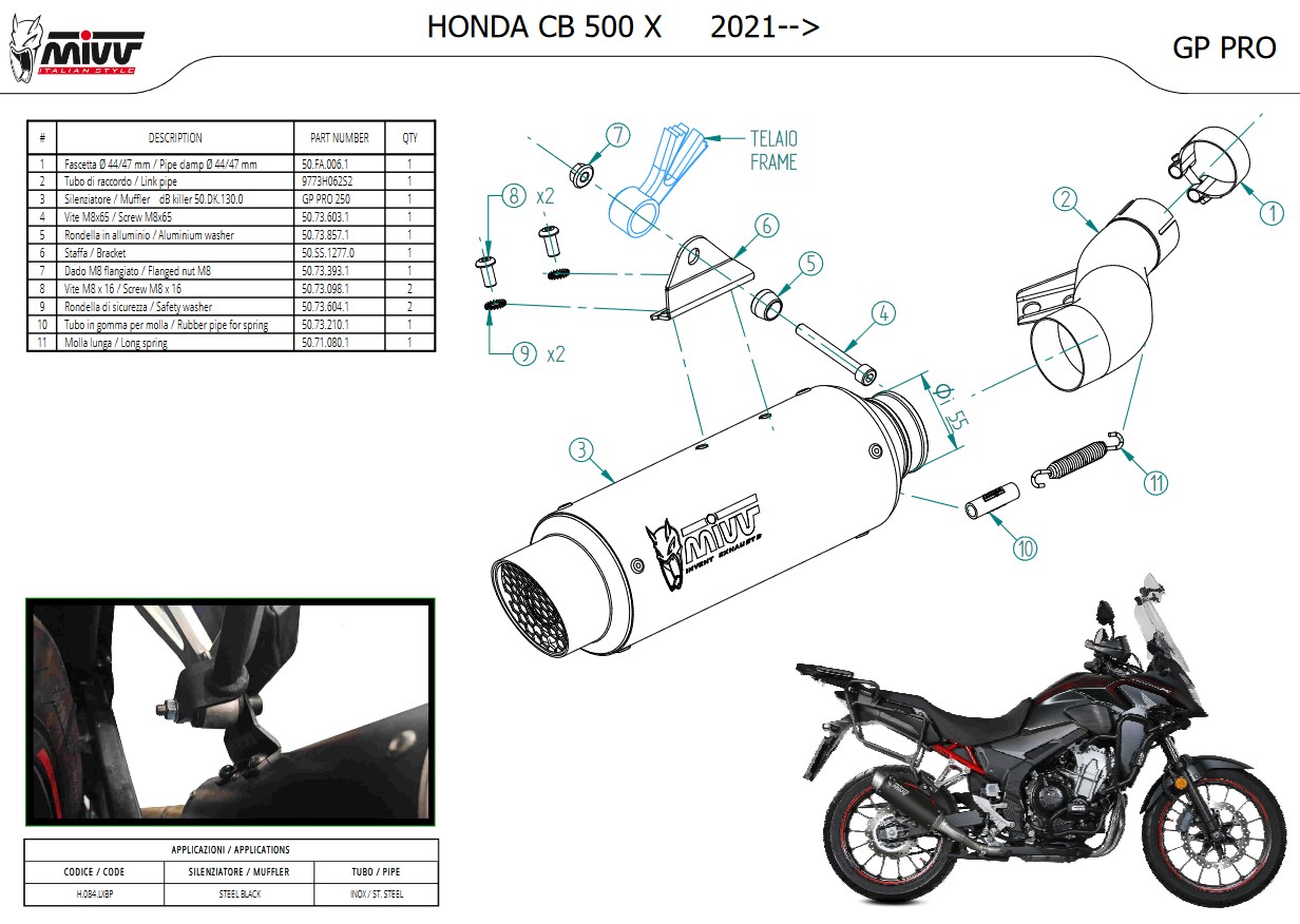 Mivv GP Pro RVS Black Slip-on Einddemper met E-keur Honda CB 500 X 2021 - 2024