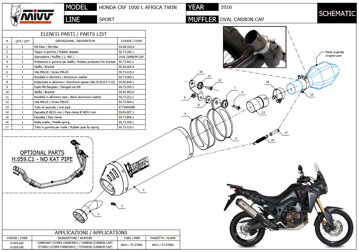 Mivv Oval Titanium Slip-on Einddemper met E-keur Honda CRF 1000 L Africa Twin 2016 > 2019