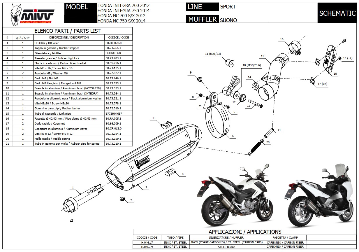 Mivv Suono RVS Black Slip-on Einddemper met E-keur Honda NC 700 S / X 2012 > 2014