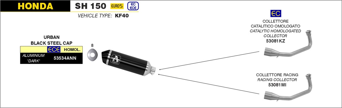 Arrow volledig Uitlaatsysteem met Urban Aluminium Dark Einddemper met E-keur incl. Katalysator Honda SH 150 i 2020 > 2023