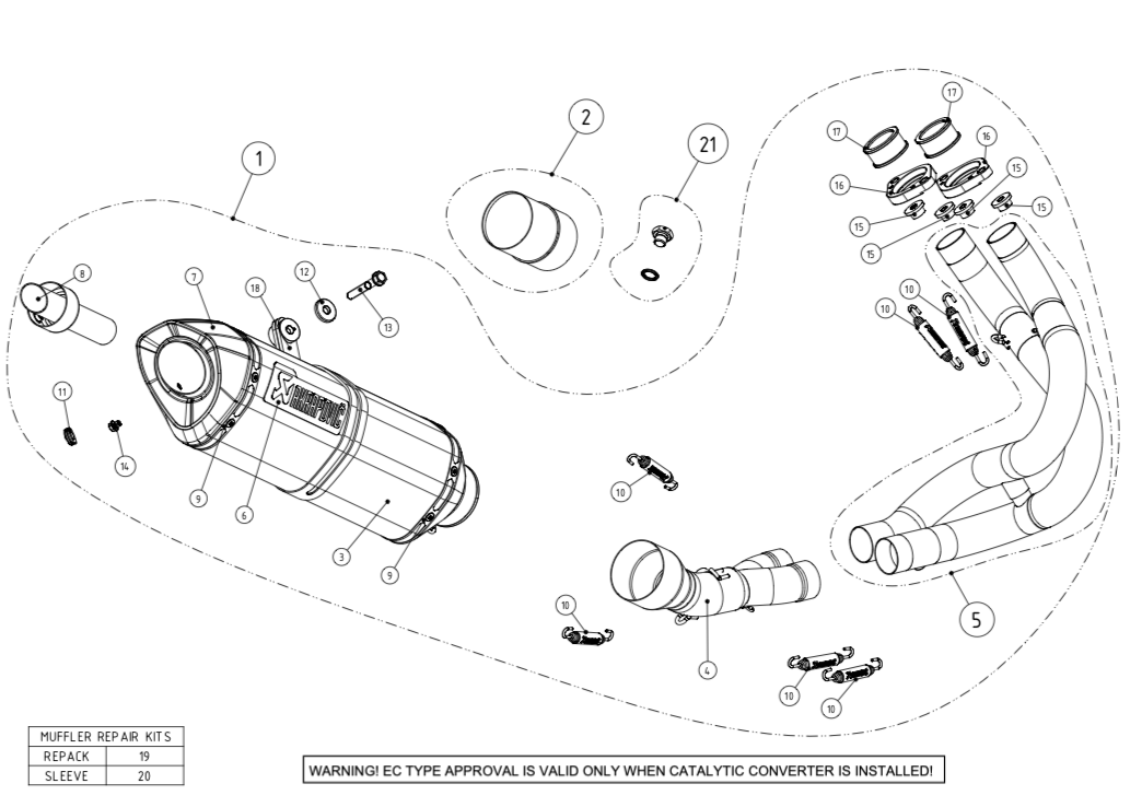 - Compleet Uitlaatsysteem bestaande uit Titanium Einddemper en RVS voorbochten
