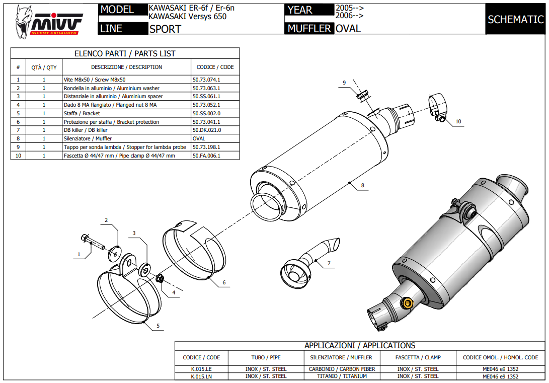 Mivv Oval Carbon Slip-on Einddemper met E-keur Kawasaki ER-6 N / F 2005 > 2011