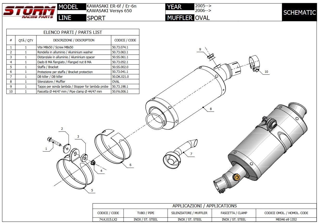 Storm By Mivv Oval RVS Black Slip-On Einddemper Met E-keur Kawasaki ER 6-N / F 2005 - 2011