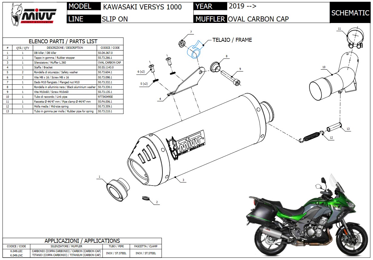 Mivv Oval Carbon met Carbon Cap Slip-on Einddemper met E-keur Kawasaki Versys 1000 2019 > 2024