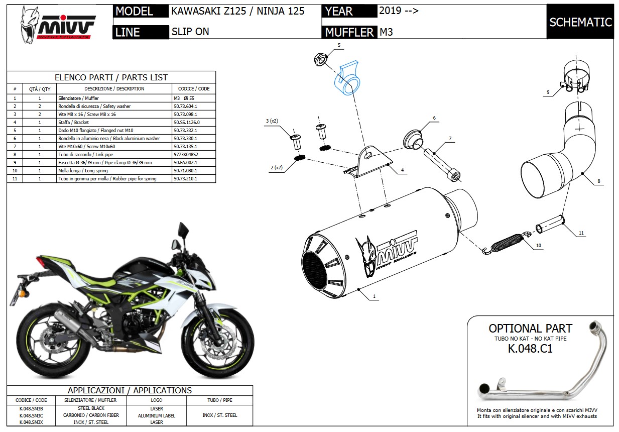 Mivv MK3 Carbon Einddemper zonder E-keur Kawasaki Z125 2019 > 2024
