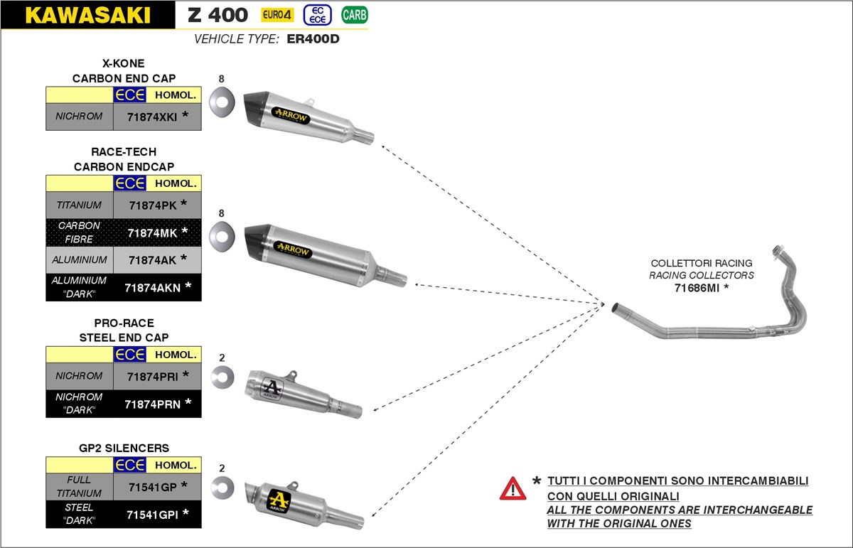 Arrow X-Kone Nichrom Slip-on Einddemper met E-keur Kawasaki Z 400 2019 - 2020