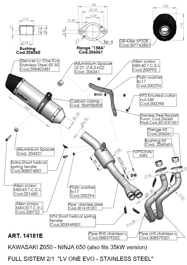 Leovince LV One Evo RVS Compleet 2in1 Uitlaatsysteem Kawasaki Z 650 2017 > 2020