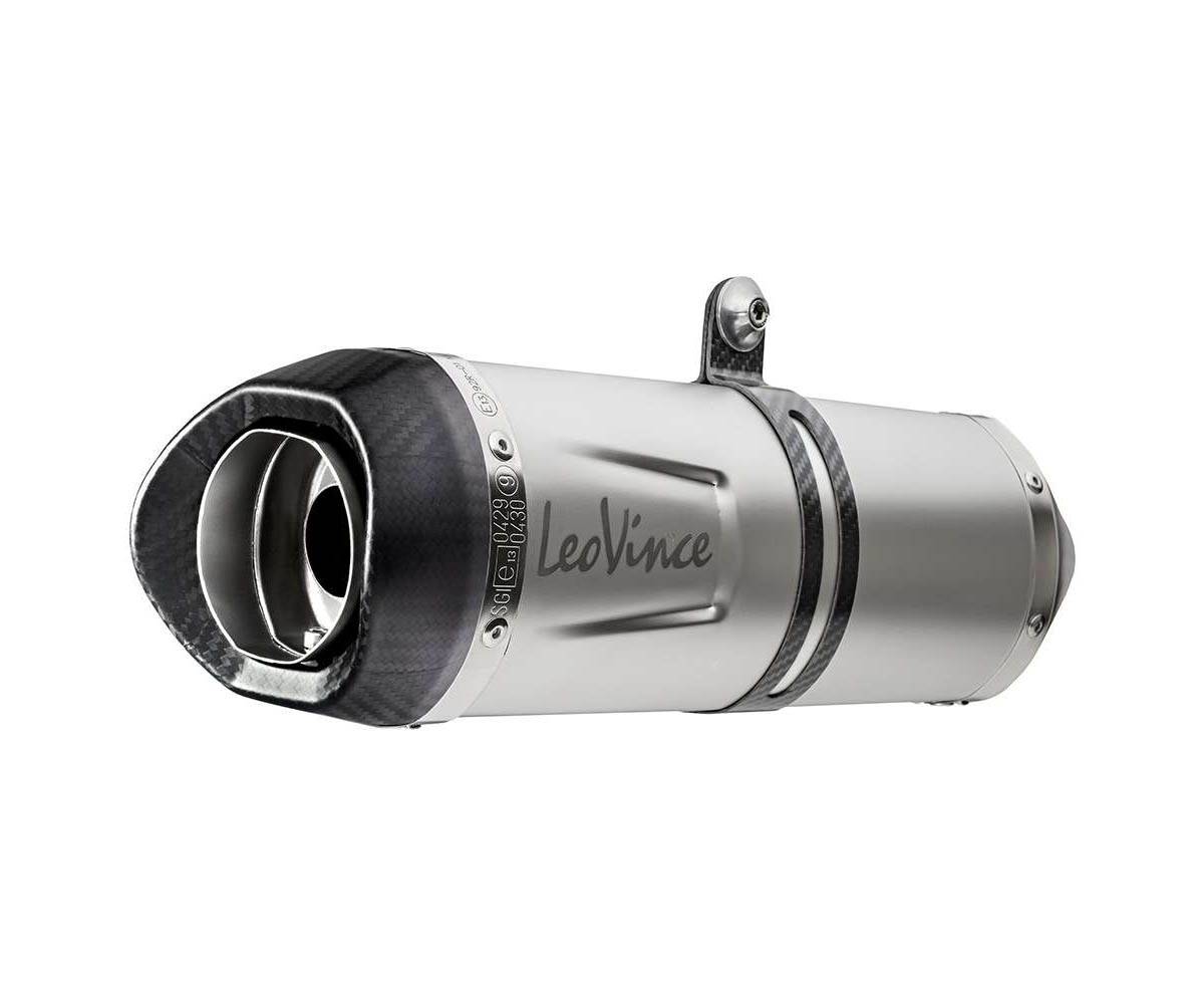 Deze uitlaat is opgebouwd uit AISI 304 roestvrij staal met een volledig carbon eindkap en montagestrap. Met een gewicht van 4,99 kg en een matte afwerking met laser LeoVince-logo is dit een hoogwaardige en straatlegale upgrade inclusief link pipe en E-keur certificaat.
