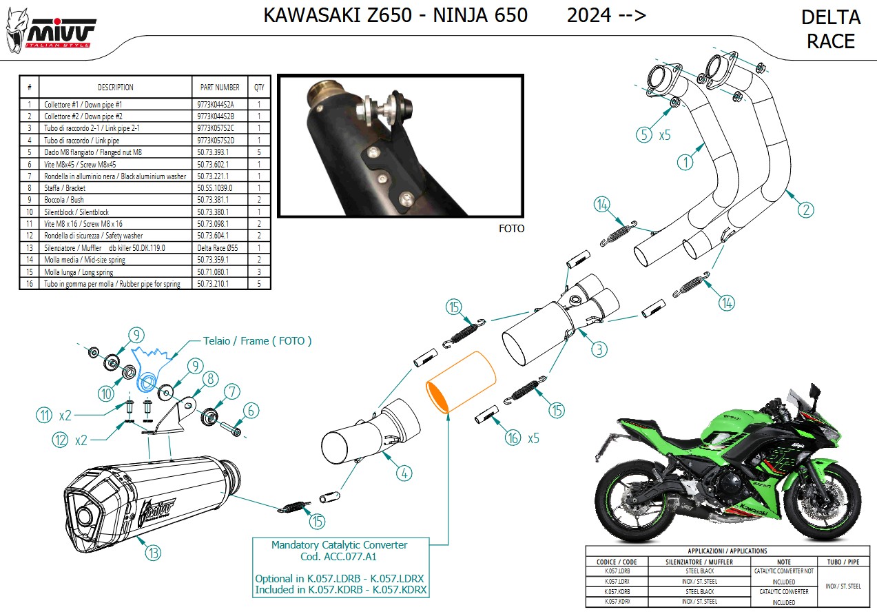 NOTICE: TYPE APPROVED ONLY WHEN ACC.077.A1 CATALYST IS INSTALLED. Installing this exhaust system without the catalytic converter and the switch-off key may cause the engine warning light to come on. Removable catalyst ACC.077.A1 available as an optional part.