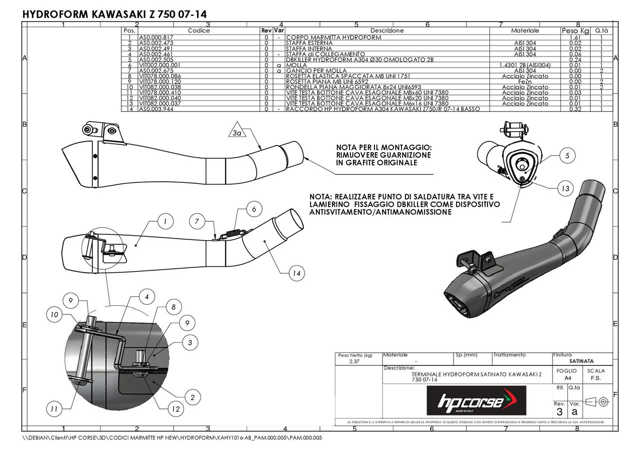 HP Corse Hydroform RVS Slip-on Einddemper met E-keur Kawasaki Z 750 2007 - 2014