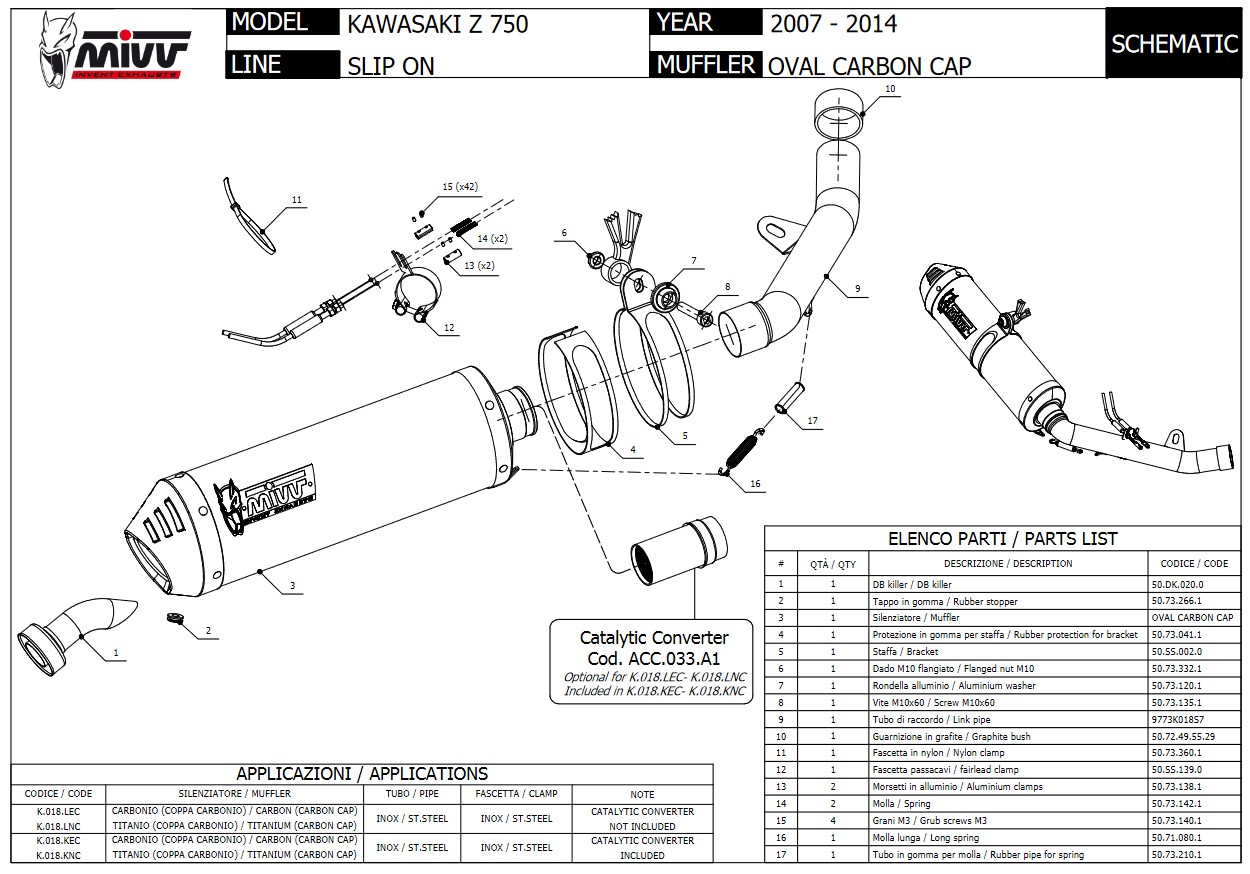 Mivv Oval Carbon met Carbon Cap Slip-on Einddemper met E-keur Kawasaki Z 750 2007 > 2014