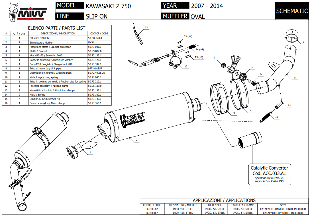 Mivv Oval RVS Slip-on Einddemper met E-keur Kawasaki Z 750 2007 > 2014