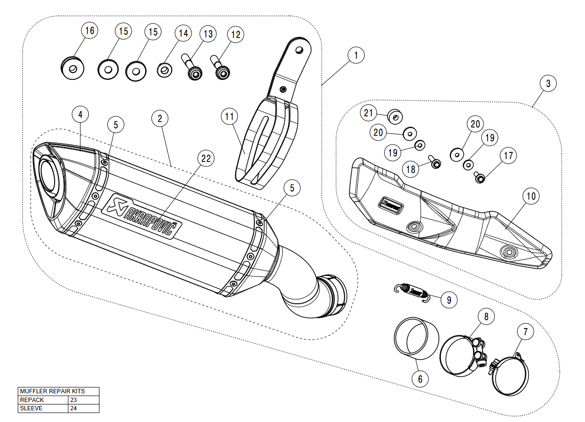 * Carbon Heatshield (nr. 3 op de technische tekening is een optioneel onderdeel en wordt dan ook niet standaard mee geleverd en moet apart worden bijbesteld)