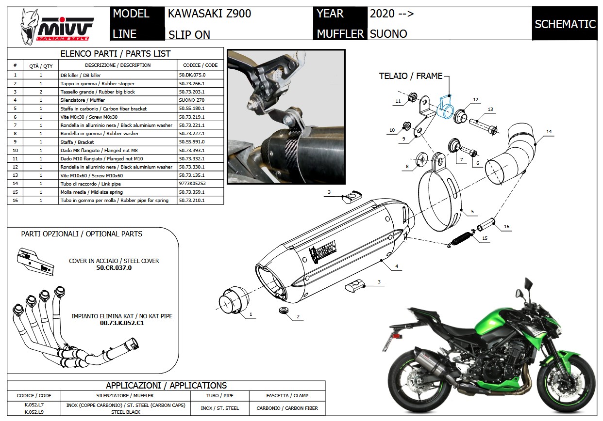 Mivv Suono Steel Black Slip-on Einddemper met E-keur Kawasaki Z900 2020 > 2024