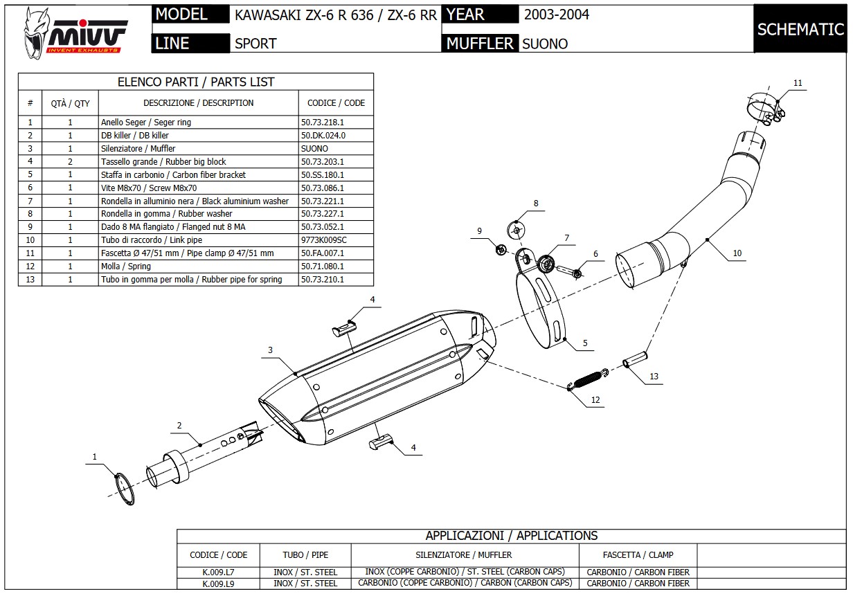 Mivv Suono RVS Black Slip-on Einddemper met E-keur Kawasaki ZX-6 R 636 2003 > 2004