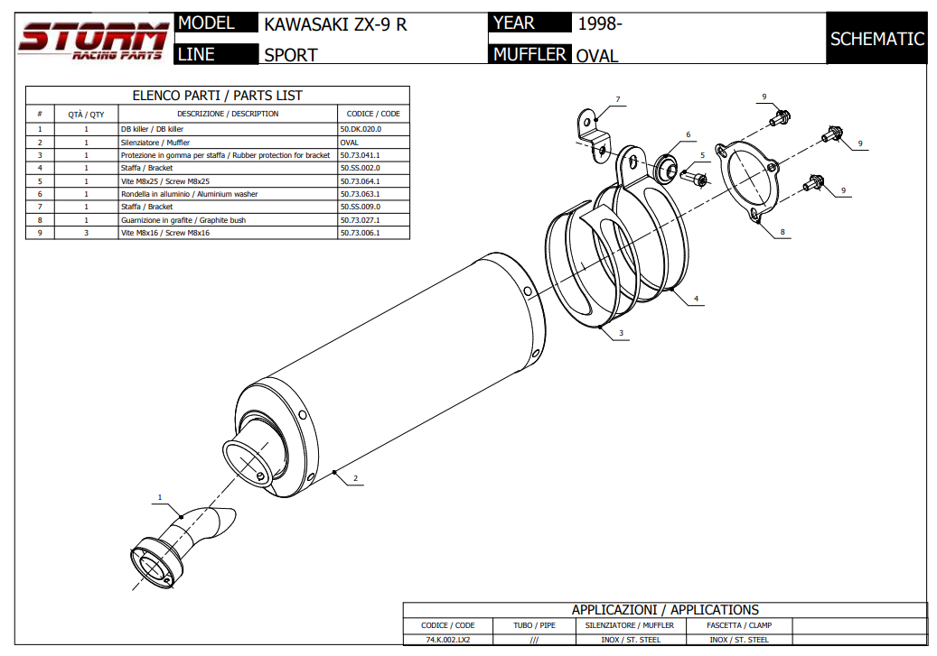 Storm By Mivv Oval RVS Black Slip-On Einddemper Met E-keur KAWASAKI ZX-9R 1998 - 2005