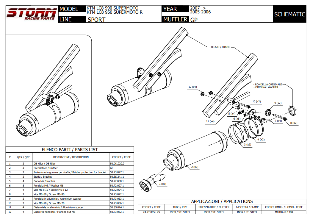 Storm By Mivv Dubbele GP RVS Black Bolt-On Einddemper Met E-keur KTM 990 SUPERMOTO R 2007 - 2013