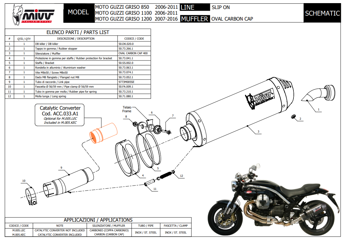 Mivv Oval Carbon met Carbon Cap Slip-on Einddemper met E-keur Moto Guzzi Griso 850 2006 > 2011