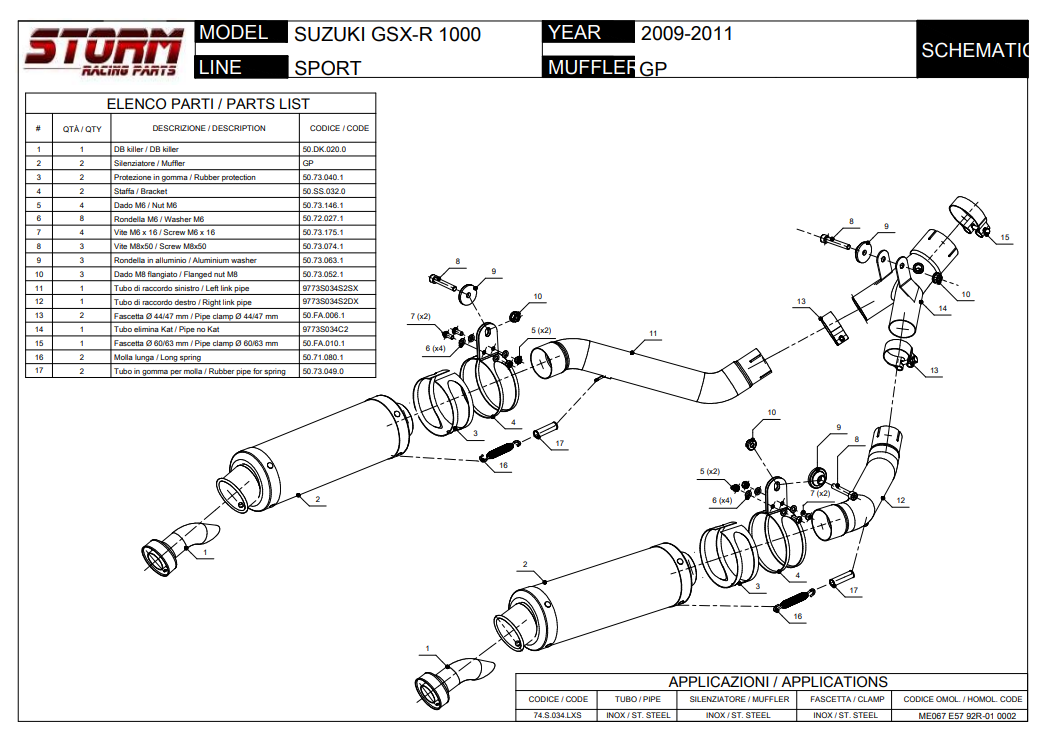 Storm By Mivv Dubbele GP RVS Black Slip-On Einddemper Met E-keur SUZUKI GSX-R 1000 2009 - 2011