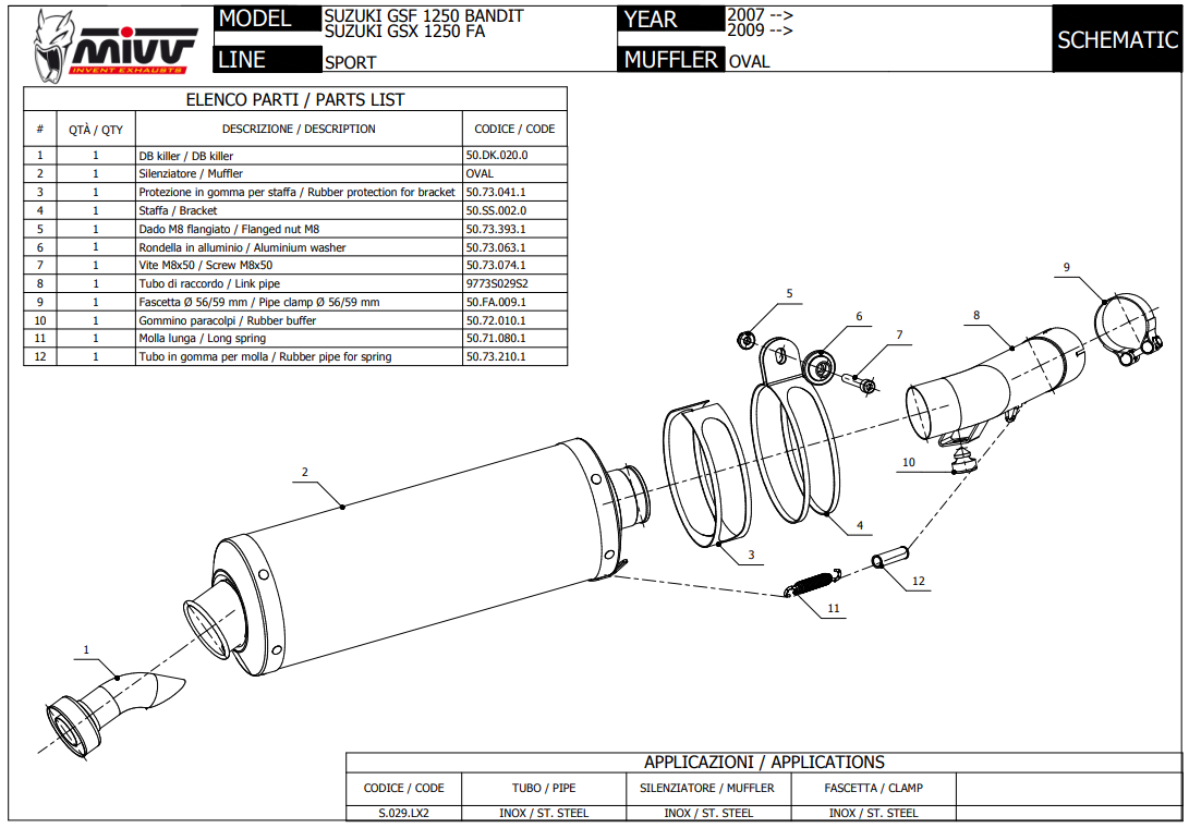 Mivv Oval RVS Slip-on Einddemper met E-keur Suzuki GSX 1250 FA 2009 > 2016