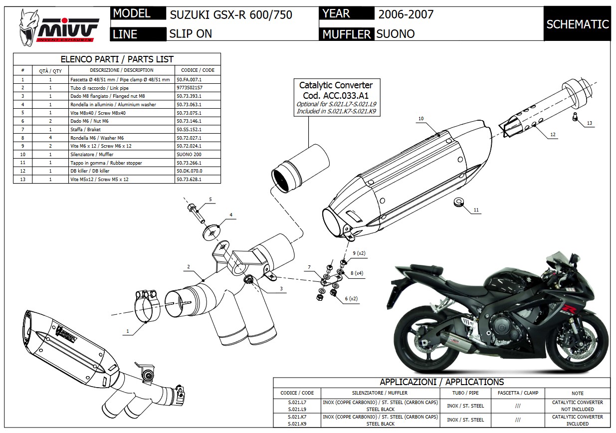 Mivv Suono RVS Black Slip-on Einddemper met E-keur Suzuki GSX-R 600 2006 > 2007