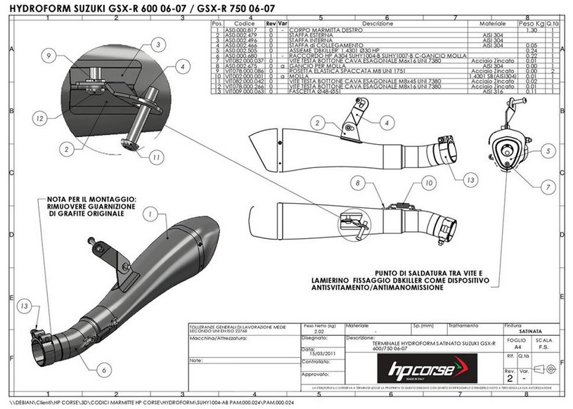 HP Corse Hydroform RVS Black Slip-on Einddemper met E-keur Suzuki GSX-R 750 2006-2007