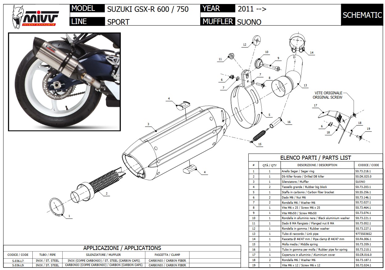 Mivv Suono RVS Black Slip-on Einddemper met E-keur Suzuki GSX-R 750 2011 > 2016