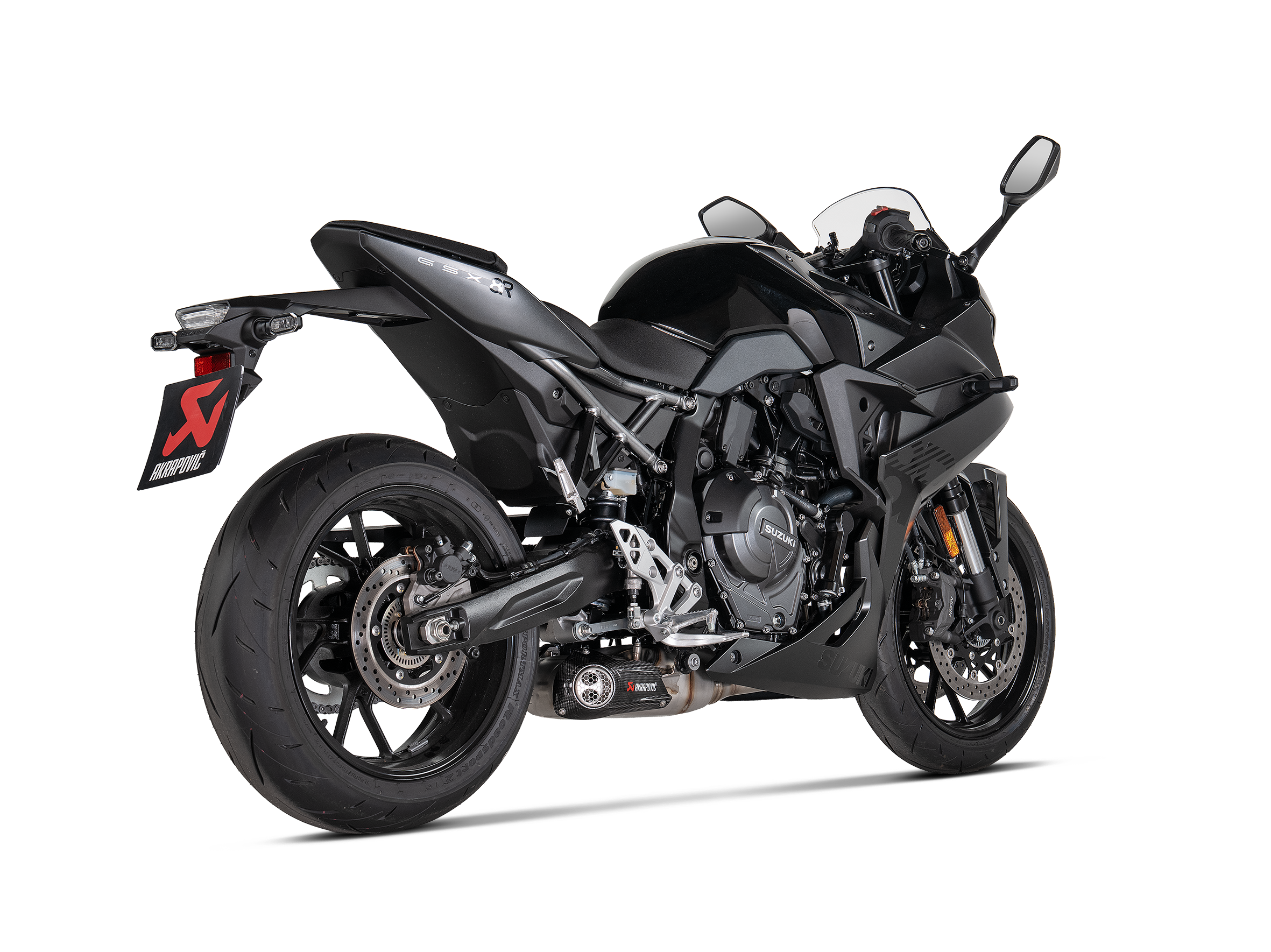 If features plug-and-play installation with no remapping required. Focus was placed on optimal throttle response and performance during development, which has resulted in a power increase of 1.8 kW (2.5 hp) at 9,500 rpm and a torque boost of 1.4 Nm at 5,500 rpm when compared to a Suzuki GSX-8S with a standard stock exhaust system and tested on the Akrapovič in-house dyno. Weight is reduced by 29.1% (2.2 kg) compared to the standard stock exhaust system. Delivering a deep and sporty sound, this full system is EC/ECE type approved and Euro 5+ compliant. It has been designed so that it can also be mounted in combination with the original Suzuki soft sided case set.