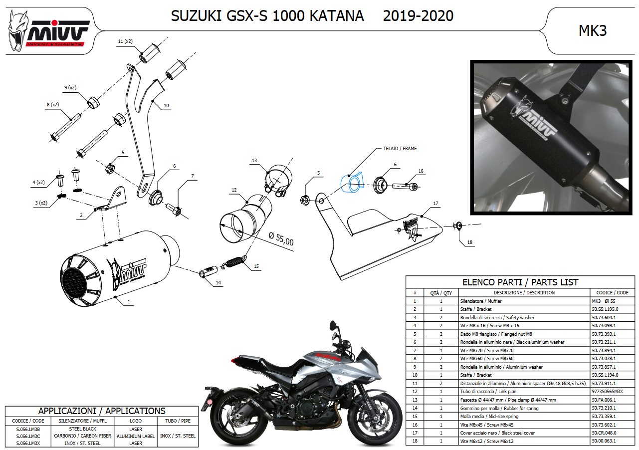 Mivv MK3 RVS Slip-on Einddemper met E-keur Suzuki GSX-S 1000 Katana 2019 - 2024