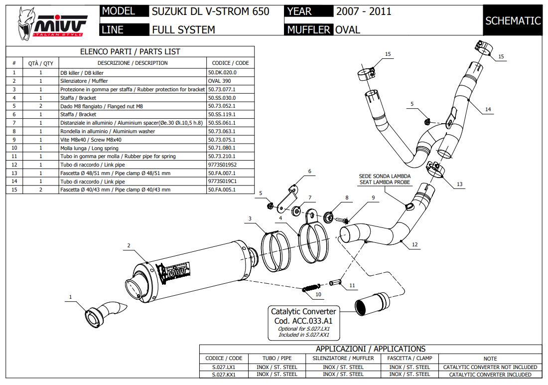 Mivv Oval RVS Slip-on Einddemper met E-keur Suzuki DL V-Strom 650 2007 > 2011