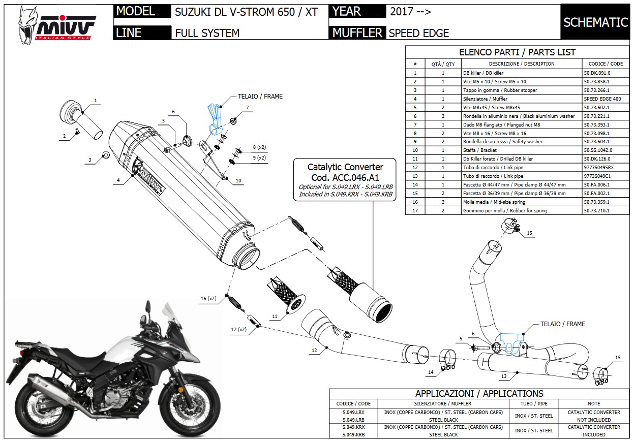 Mivv Speed Edge Volledig Uitlaatsysteem met E-keur Suzuki DL V-Strom 650 / XT 2017 > 2024