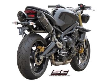 SC Project Dubbele Oval Carbon Slip-On Einddemper Met E-keur TRIUMPH STREET TRIPLE 675 / R 2007 - 2012