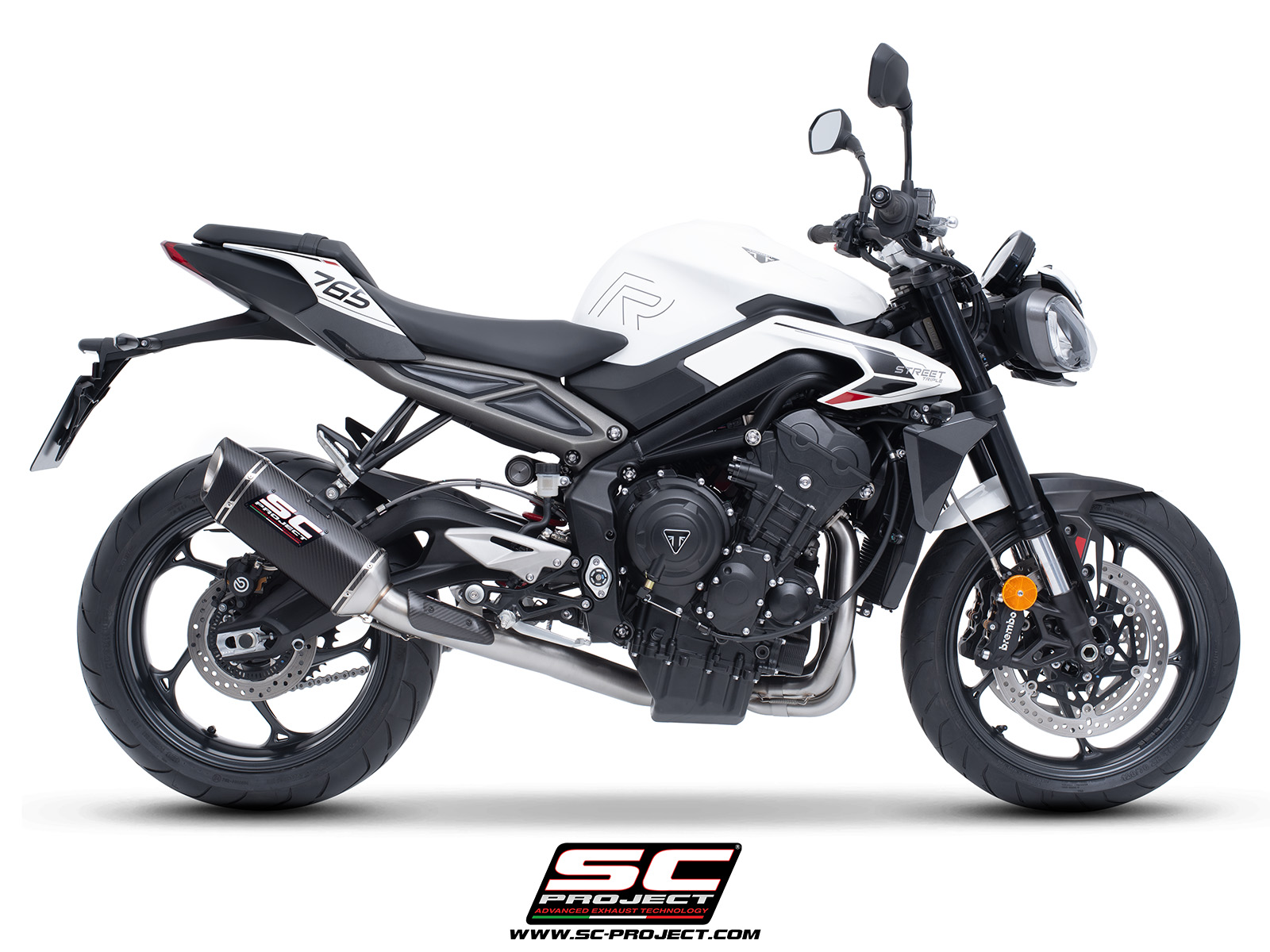 SC-Project Volledig 3-1 RVS Uitlaatsysteem Met SC1-S Carbon Einddemper zonder E-keur TRIUMPH STREET TRIPLE 765 R / RS 2024 - 2025