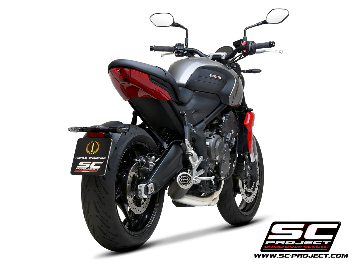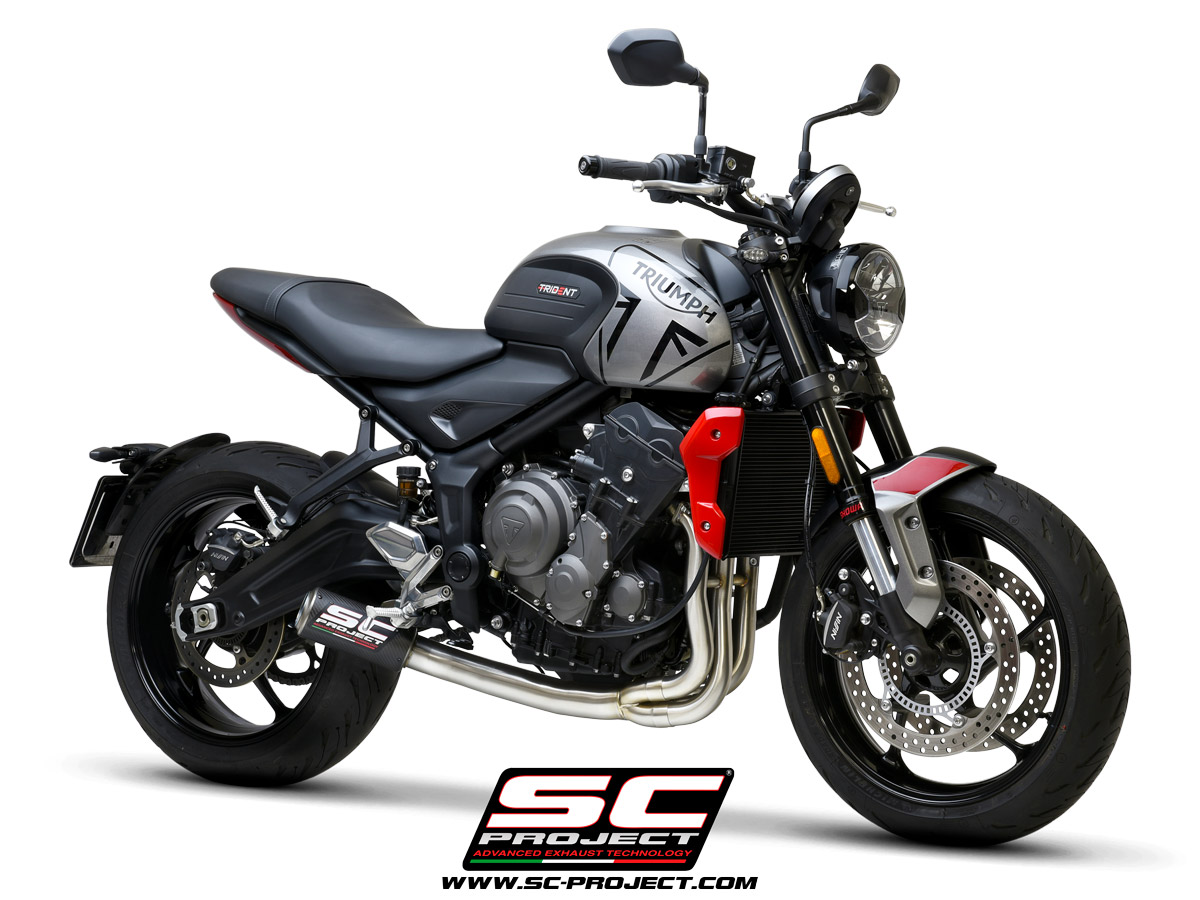 SC-Project Volledig 3-1 RVS Uitlaatsysteem Met CR-T Carbon With Stoneguard Grid Slip-On Einddemper Zonder E-keur TRIUMPH TRIDENT 660 2021 - 2024