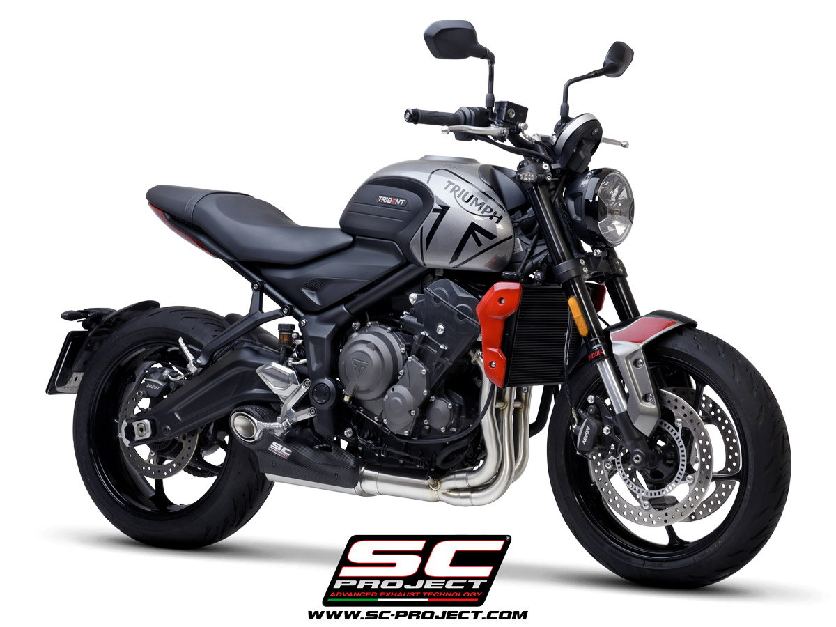 SC-Project Volledig 3-1 RVS Uitlaatsysteem Met STR-1 RVS Matt Black Einddemper Euro5 Gekeurd TRIUMPH TRIDENT 660 2021 - 2024