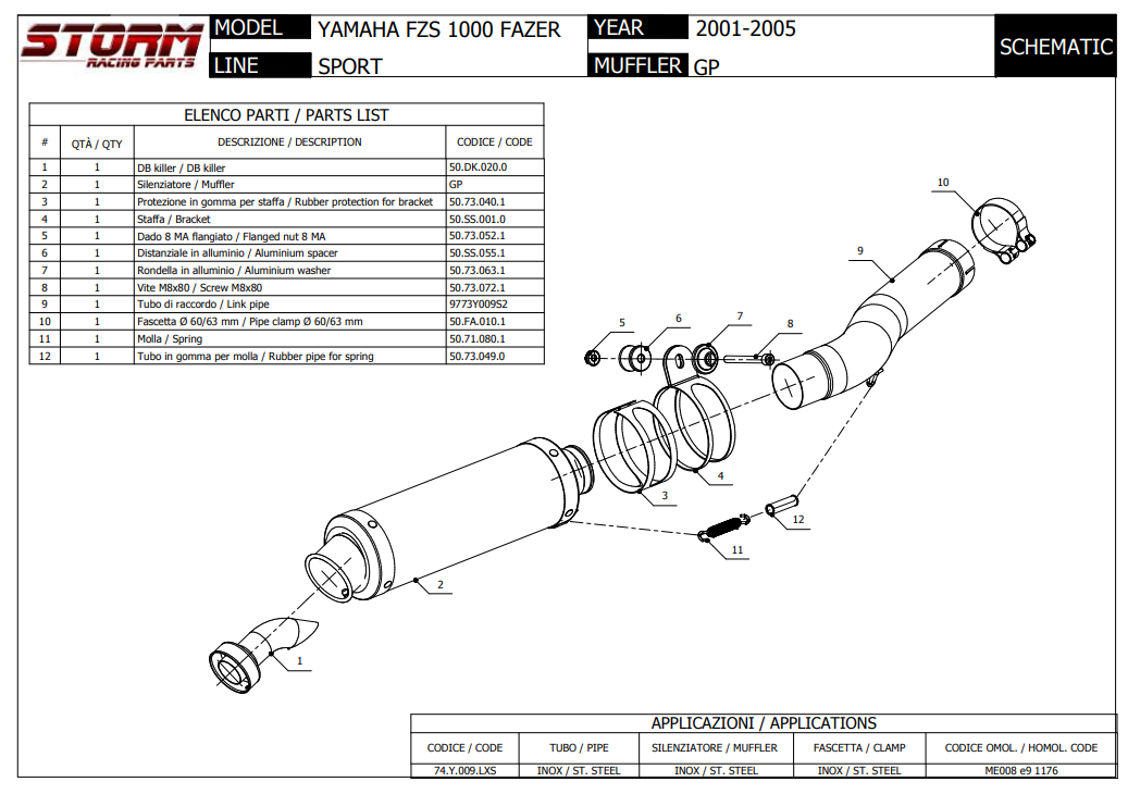 Storm By Mivv GP RVS Black Slip-On Einddemper Met E-keur YAMAHA FZS 1000 FAZER 2001 - 2005