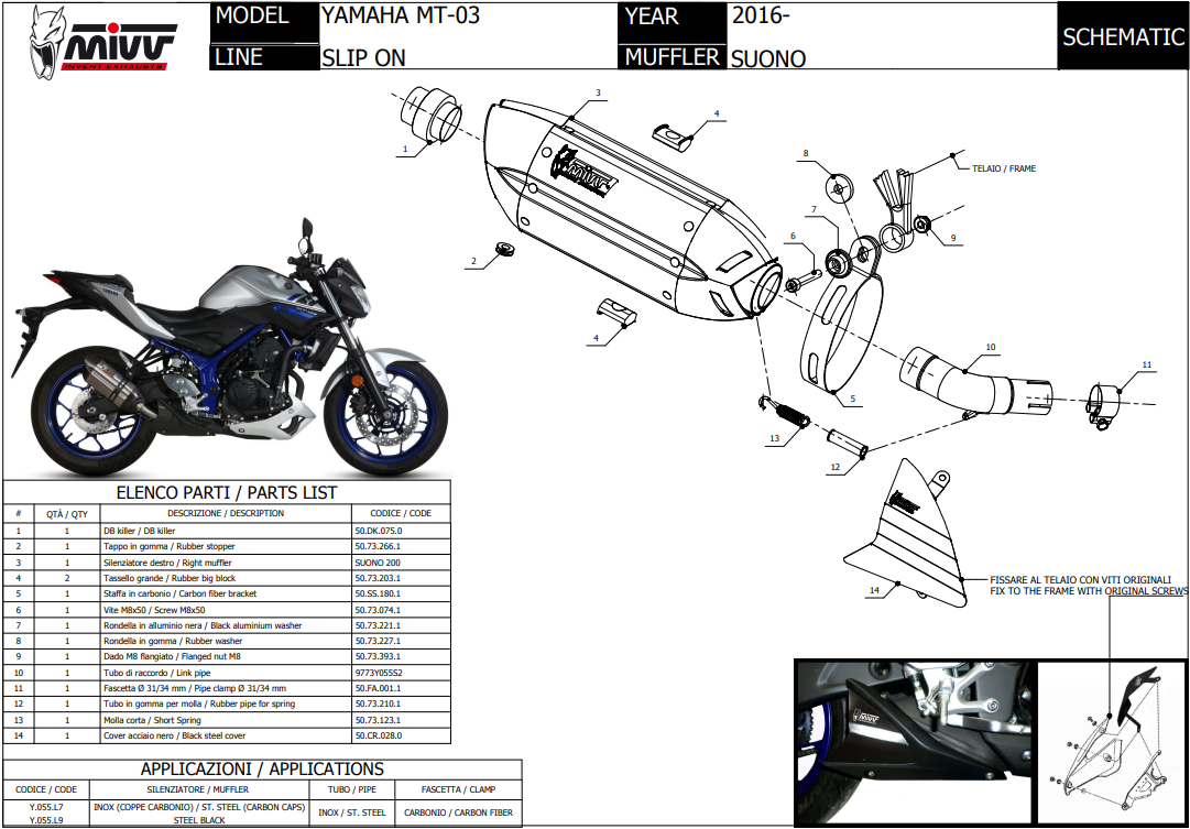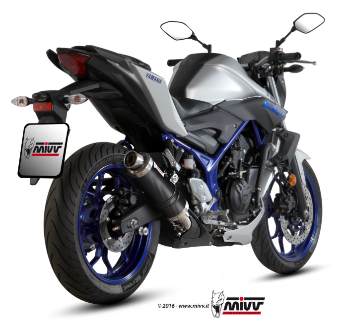 De MIVV GP Carbon slip-on is een compacte demper die direct is geïnspireerd op de MotoGP. Met zijn korte bodylengte van 300 mm en een sleeve van carbon geeft hij je motor een agressieve uitstraling en sportief geluid. Dankzij het lichte gewicht van 1,40 kg en de robuuste RVS constructie biedt de GP Carbon een perfecte mix van prestaties, stijl en duurzaamheid.